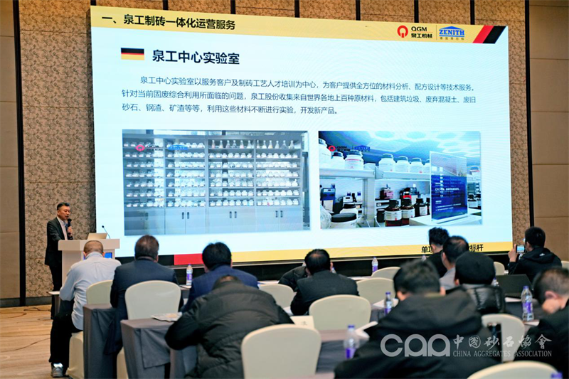 會(huì)上,泉工股份副總經(jīng)理傅國(guó)華受邀作題為《混凝土砌塊裝備技術(shù)解決方案的研究與應(yīng)用》的報(bào)告,報(bào)告中表示泉工股份致力于成為全球制磚一體化解決方案運(yùn)營(yíng)商,將綠色智能化裝備做優(yōu)做強(qiáng),積極打造科技含量高、經(jīng)濟(jì)附加值高的綠色智能裝備產(chǎn)業(yè)鏈。通過干法振壓成型或濕法制磚工藝,為客戶提供定制化制磚解決方案。