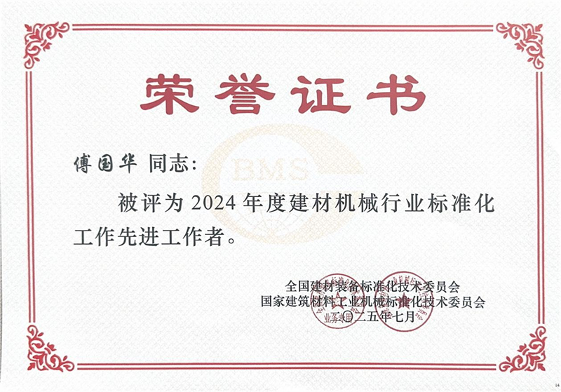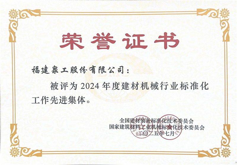 在同期舉行的表彰環(huán)節(jié)中,泉工股份被授予“2024年度建材機械行業(yè)標準化工作先進集體”稱號,公司副總經(jīng)理傅國華榮獲“2024年度建材機械行業(yè)標準化工作先進工作者”稱號。