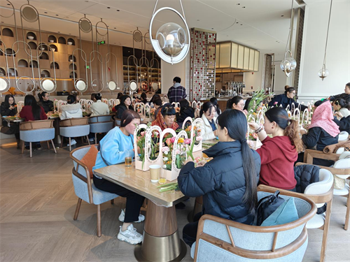 活動現(xiàn)場也為大家準(zhǔn)備了精致的下午茶。精美的茶點、香濃的咖啡,搭配上親手制作的插花作品,讓每一位女性員工都感受到了公司對她們的關(guān)懷與尊重。大家在輕松愉悅的氛圍中,分享著彼此的插花作品和烘焙成果,臉上洋溢著幸福的笑容。