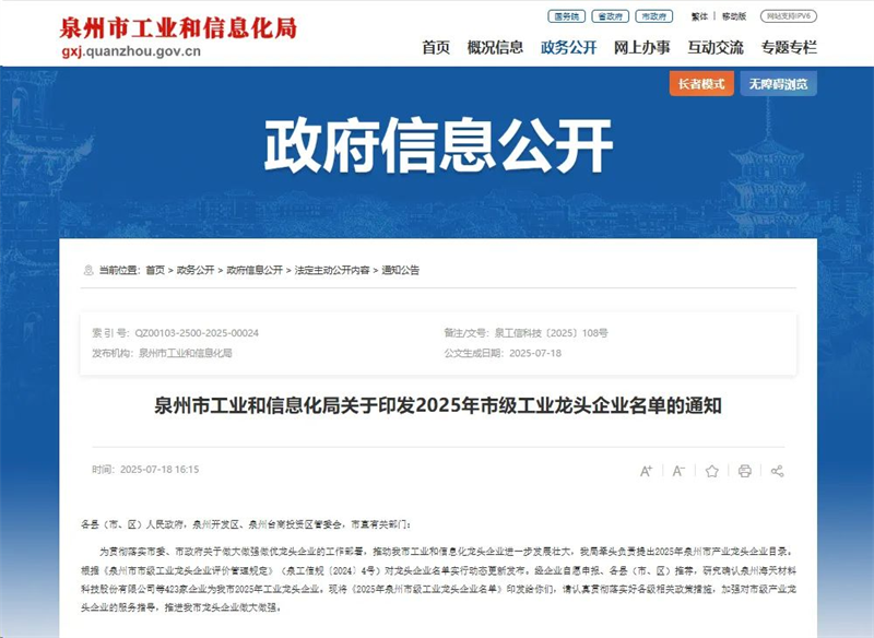 本次遴選嚴(yán)格依據(jù)《泉州市市級工業(yè)龍頭企業(yè)評價管理規(guī)定》(泉工信規(guī)〔2024〕4號),歷經(jīng)企業(yè)自愿申報、各縣(市、區(qū))推薦、專家評審、社會公示等多道程序,并實(shí)行“有進(jìn)有出”的動態(tài)管理機(jī)制,充分體現(xiàn)了名單的權(quán)威性、時效性及含金量。